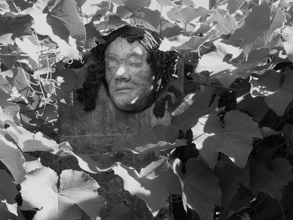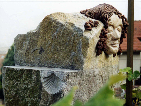 La statue occupe une aire limitée par deux rangées de vigne convergentes. Cette implantation végétale constitue pour la statue un lieu intime mais ouvert sur l’espace et dont l’aspect évolue au fil des saisons. En outre, nous avons ultérieurement découvert que St. Roch était invoqué contre la peste de la vigne. Dans cette pergola apparaît St. Roch. C’est un monolithe de granit gris d’un mètre quatre-vingt- dix de hauteur et pesant une douzaine de quintaux.